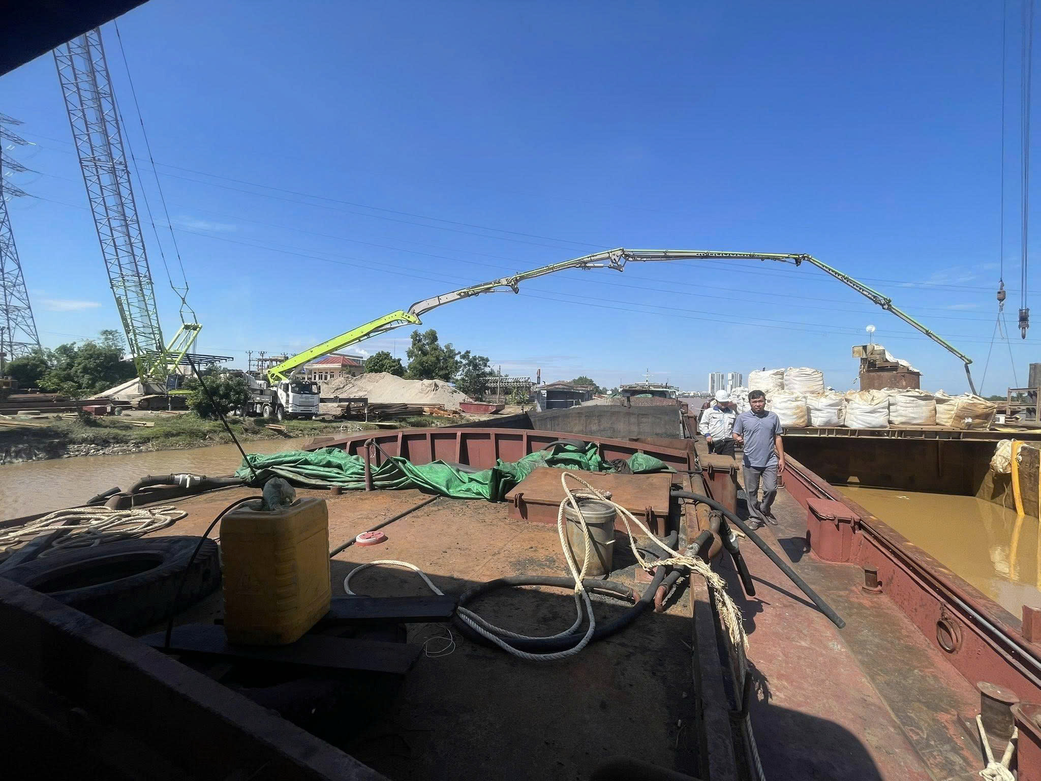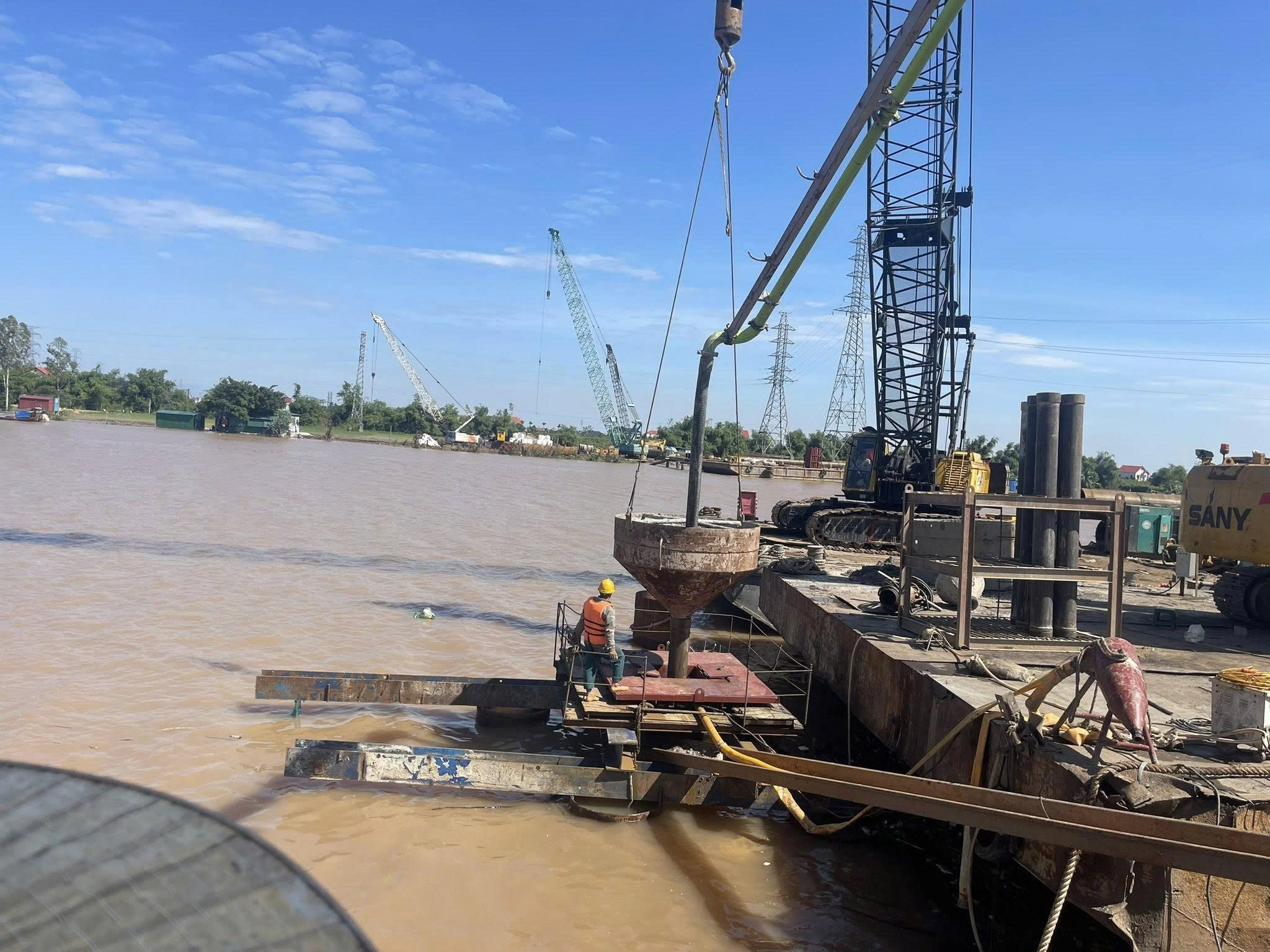 NHỮNG KHỐI BÊ TÔNG ĐẦU TIÊN ĐÃ ĐƯỢC ĐỔ XUỐNG DÒNG SÔNG THÁI BÌNH, ĐÁNH DẤU BƯỚC KHỞI ĐẦU QUAN TRỌNG TRONG QUÁ TRÌNH THI CÔNG CẦU CÁNH CÒ – CÂY CẦU NỐI LIỀN HAI BỜ SÔNG CỦA PHƯỜNG TÂN HƯNG VỚI PHƯỜNG NAM ĐỒNG.