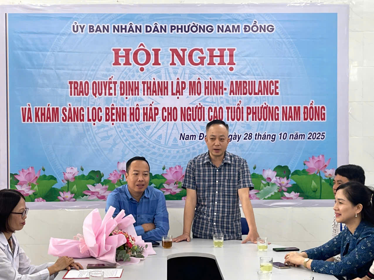 Sáng ngày 28/10/2025, Ủy ban nhân dân phường Nam Đồng tổ chức Hội nghị công bố và trao Quyết định thành lập mô hình “Nam Đồng - Ambulance” đồng thời phối hợp với bệnh viện Phổi Hải Dương khám sàng lọc, tư vấn sức khoẻ bệnh hô hấp miễn phí cho người cao tuổi trên địa bàn phường.
