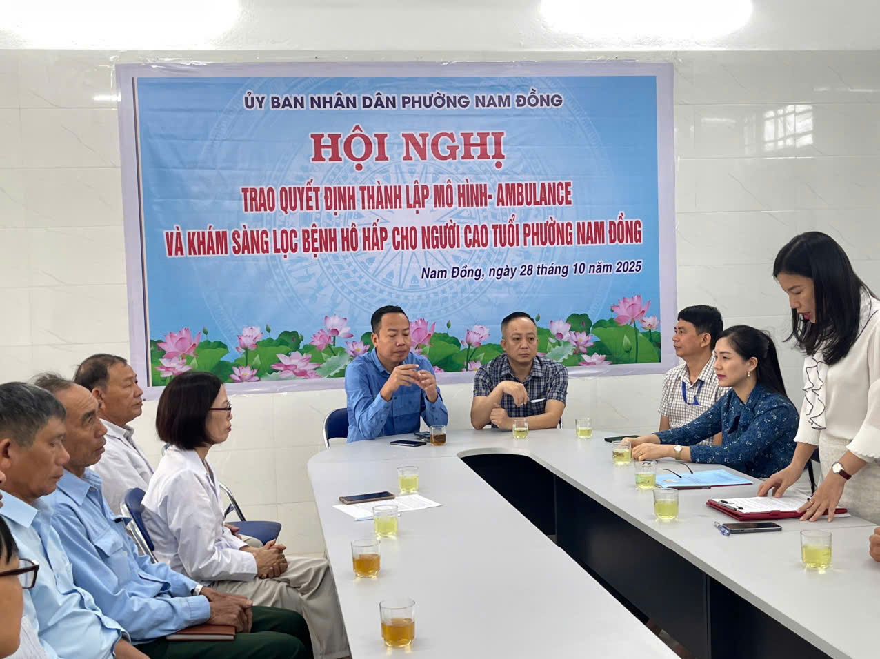 PHƯỜNG NAM ĐỒNG CÔNG BỐ THÀNH LẬP MÔ HÌNH “NAM ĐỒNG - AMBULANCE” VÀ KHÁM SÀNG LỌC BỆNH HÔ HẤP CHO NGƯỜI CAO TUỔI