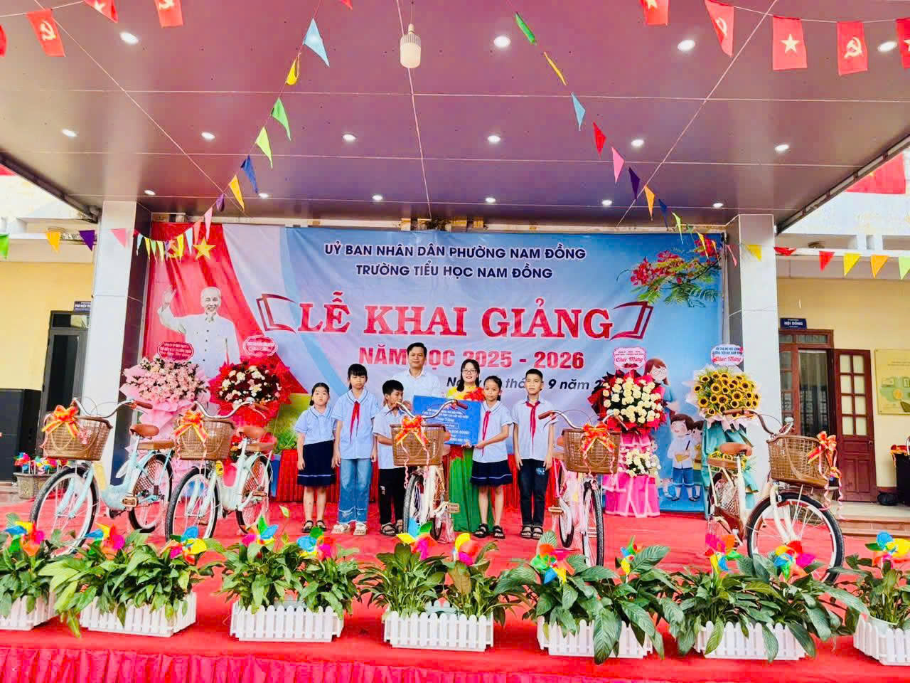 Đặc biệt, Trường Tiểu học Nam Đồng và Tiểu học Tiền Tiến đã nhận 5 suất quà là 5 chiếc xe đạp từ Hội Doanh nhân trẻ Hải Phòng trao tặng học sinh có hoàn cảnh khó khăn, khích lệ tinh thần vượt khó vươn lên trong học tập.