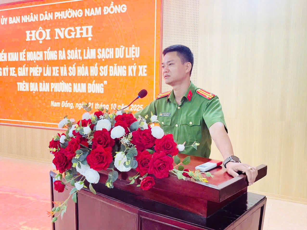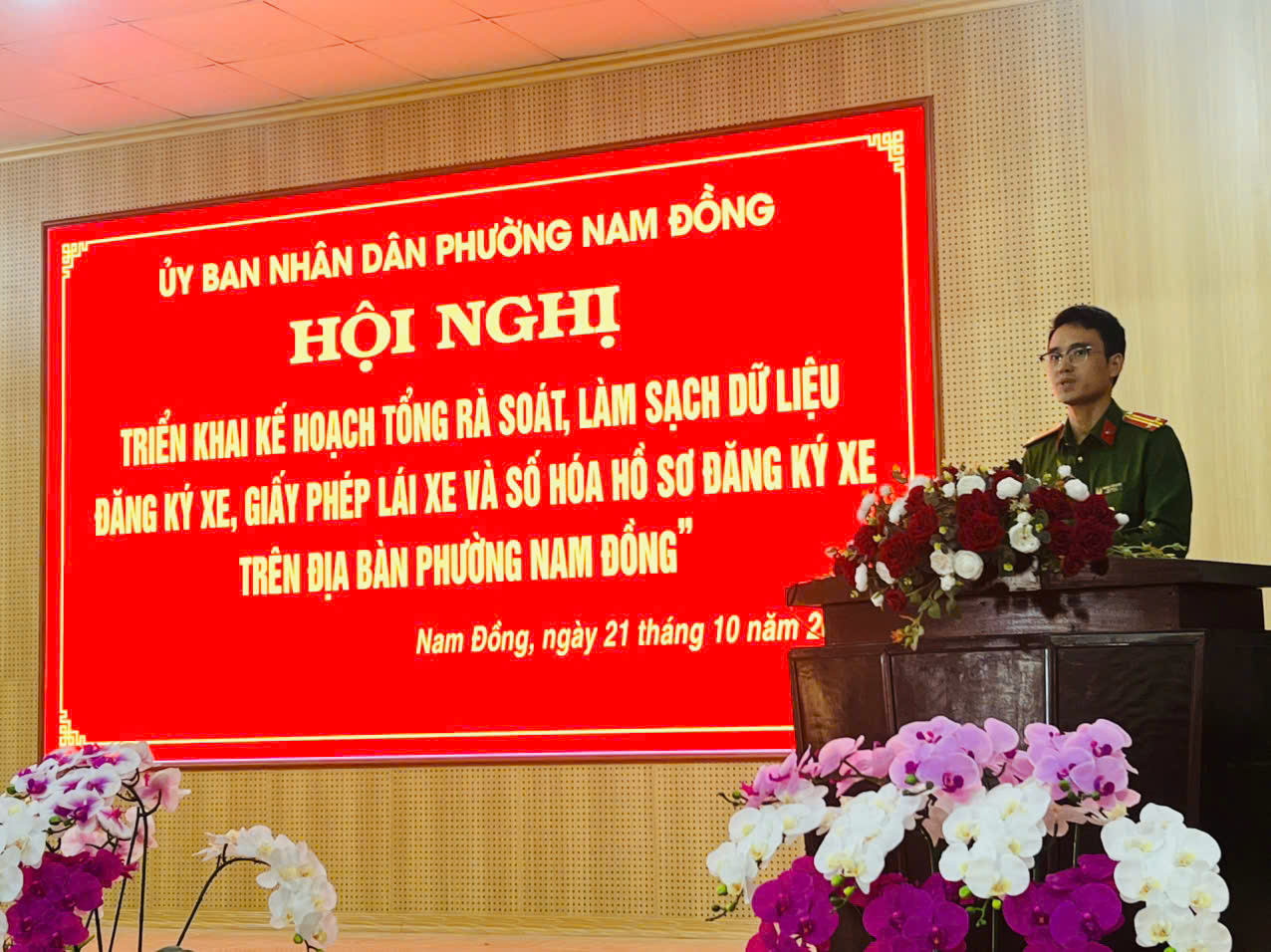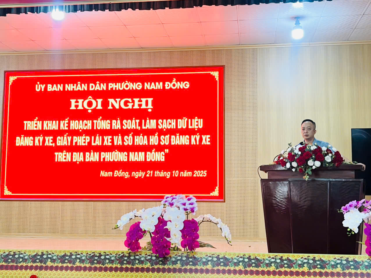 Sáng ngày 21 tháng 10 năm 2025, Ủy ban nhân dân phường Nam Đồng tổ chức Hội nghị triển khai kế hoạch tổng rà soát, làm sạch dữ liệu đăng ký xe, giấy phép lái xe và số hóa hồ sơ đăng ký xe trên địa bàn phường.