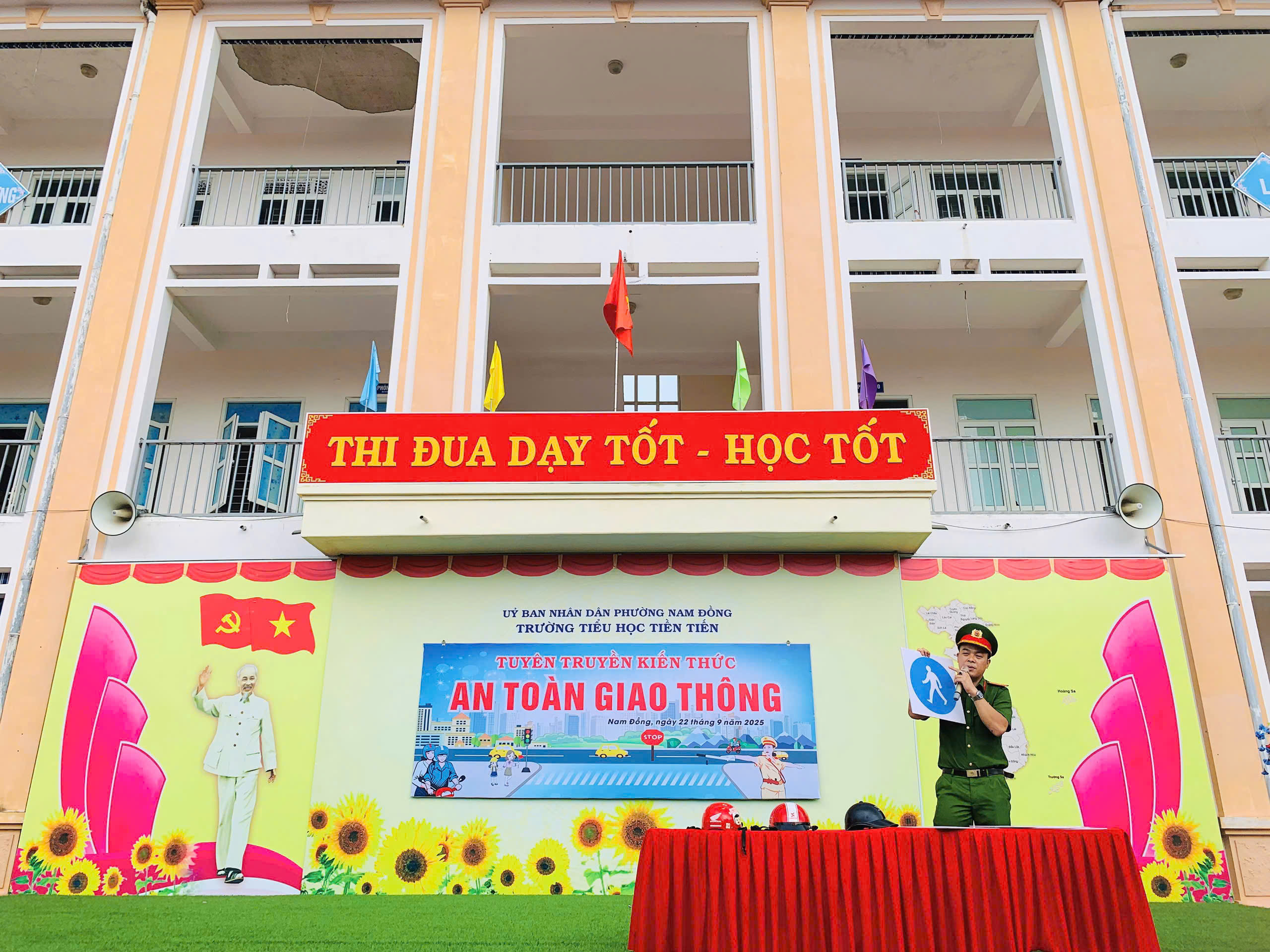 Ngày 22/9/2025, Công an Phường Nam Đồng, TP Hải Phòng phối hợp Trường Tiểu học Tiền Tiến, tổ chức buổi tuyên truyền pháp luật về trật tự an toàn giao thông đối với 1.307 cán bộ giáo viên, đại diện hội phụ huynh và học sinh Nhà trường. Tại buổi tuyên truyền, các đồng chí Công an phường đã truyền đạt những kiến thức cơ bản trong Luật TTATGT nhằm nâng cao ý thức chấp hành pháp luật về TTATGT, tình huống tham gia giao thông thực tế và kỹ năng cần thiết giúp phụ huỵnh và học sinh tham gia giao thông được an toàn, phòng tránh tai nạn giao thông có thể xảy ra. Buổi tuyên truyền đã diễn ra thành công tốt đẹp, góp phần nâng cao ý thức chấp hành luật TTATGT trong học sinh, từ đó xây dựng văn hóa khi tham gia giao thông./.