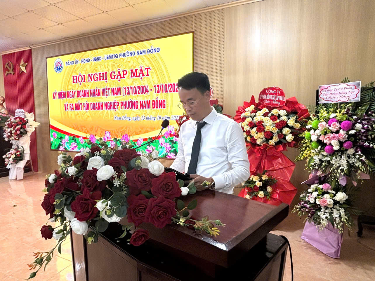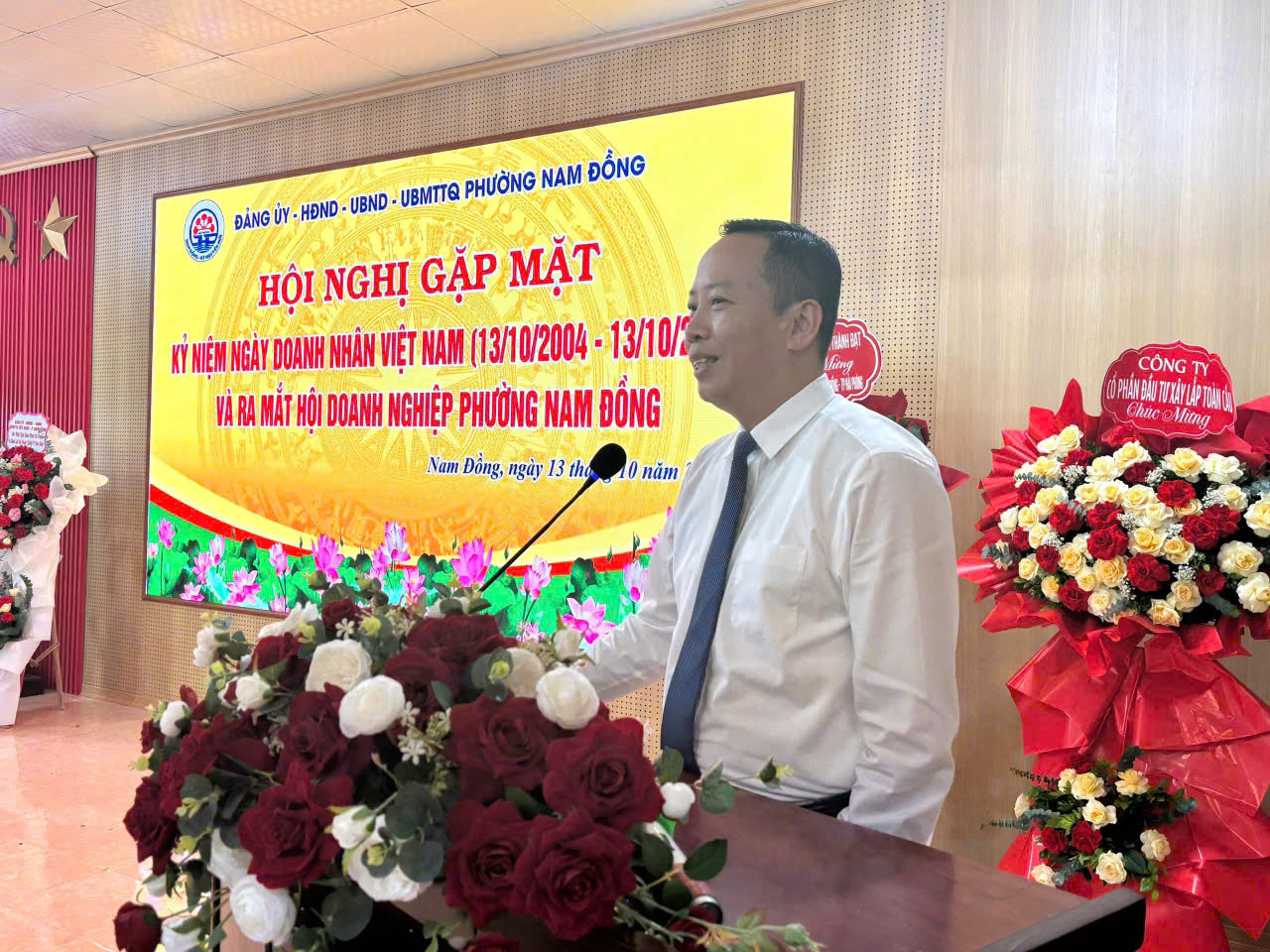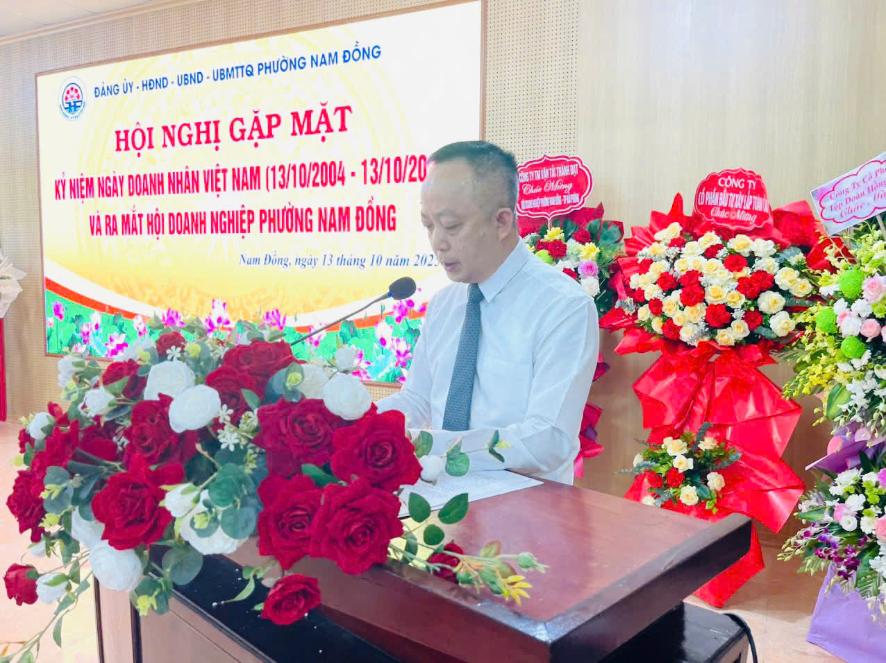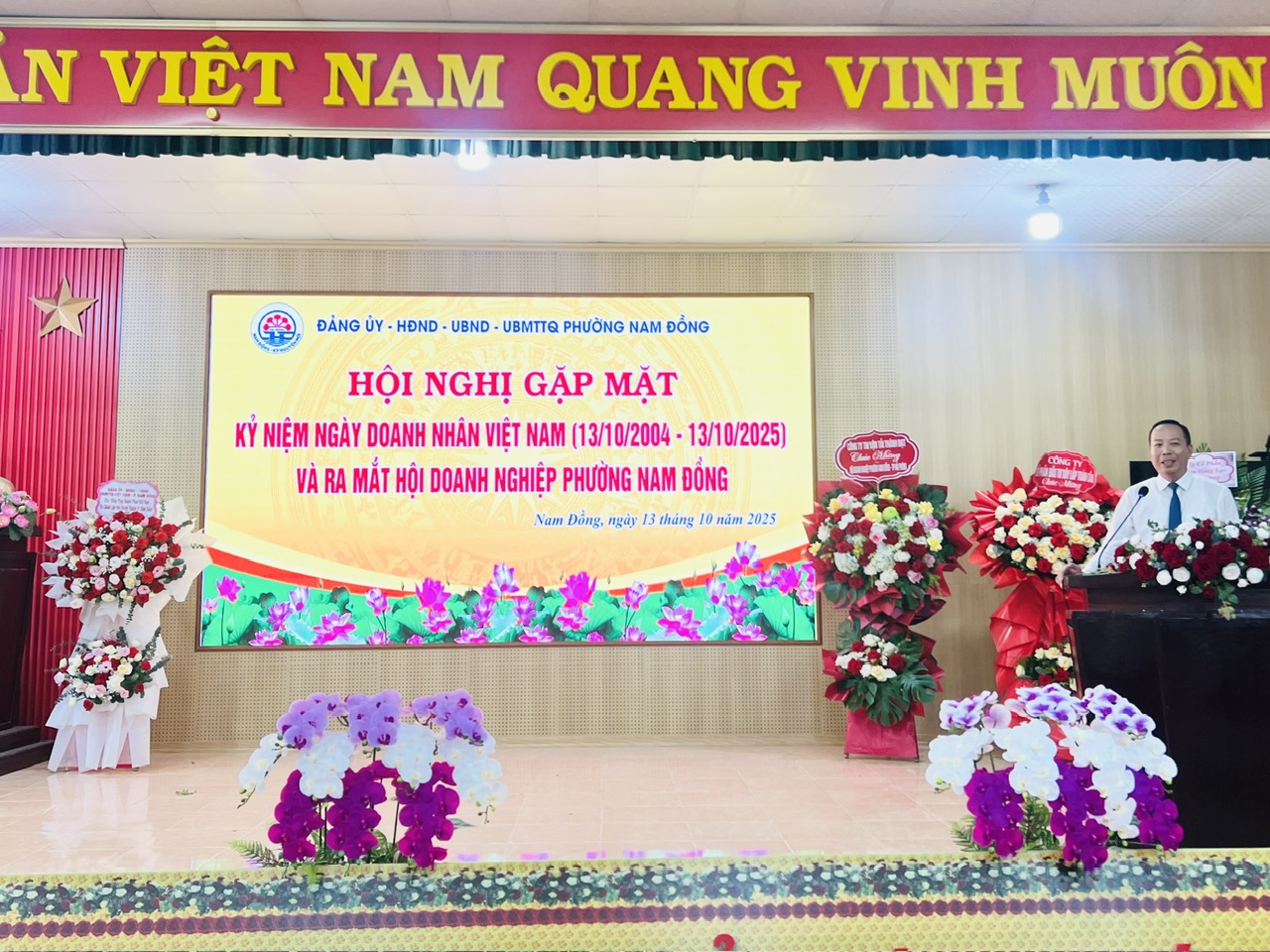 Sáng ngày 13 tháng 10 năm 2025, tại Hội trường phường Nam Đồng, Đảng ủy - HĐND - UBND - Ủy ban MTTQ Việt Nam phường Nam Đồng long trọng tổ chức Hội nghị gặp mặt kỷ niệm ngày doanh nhân Việt Nam (13/10/2004 - 13/10/2025) và ra mắt Hội Doanh nghiệp phường Nam Đồng.
